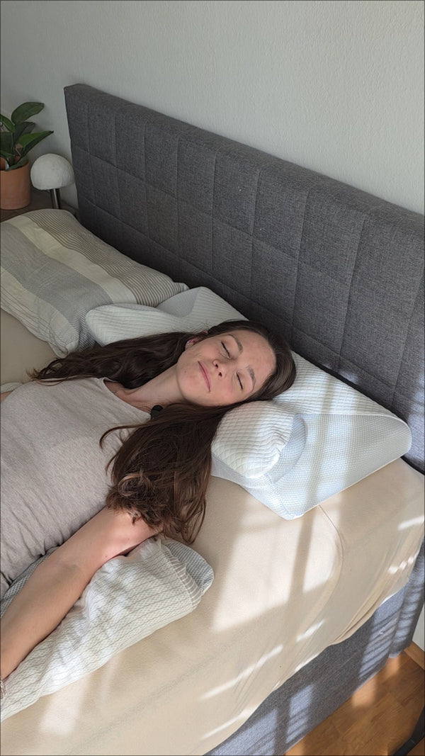 Det specialstøbte design hjælper nakken med at bevare en naturlig position, hvilket reducerer presset på nerver og muskler. Det kan bidrage til færre muskelspændinger og en mere behagelig søvn.